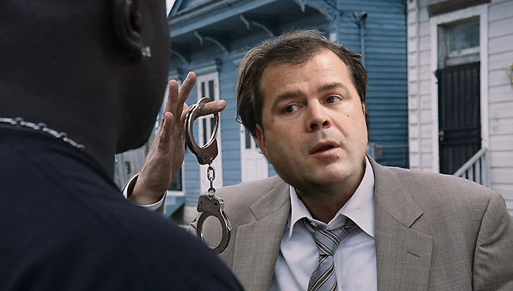 Франкоканадец с очень хитрым выражением лица и заметным отпечатком плутоватости в глазах. Это даже не жестокий «плохой лейтенант», а, скорее, вороватый и веселый комиссар из «Откройте, полиция!».