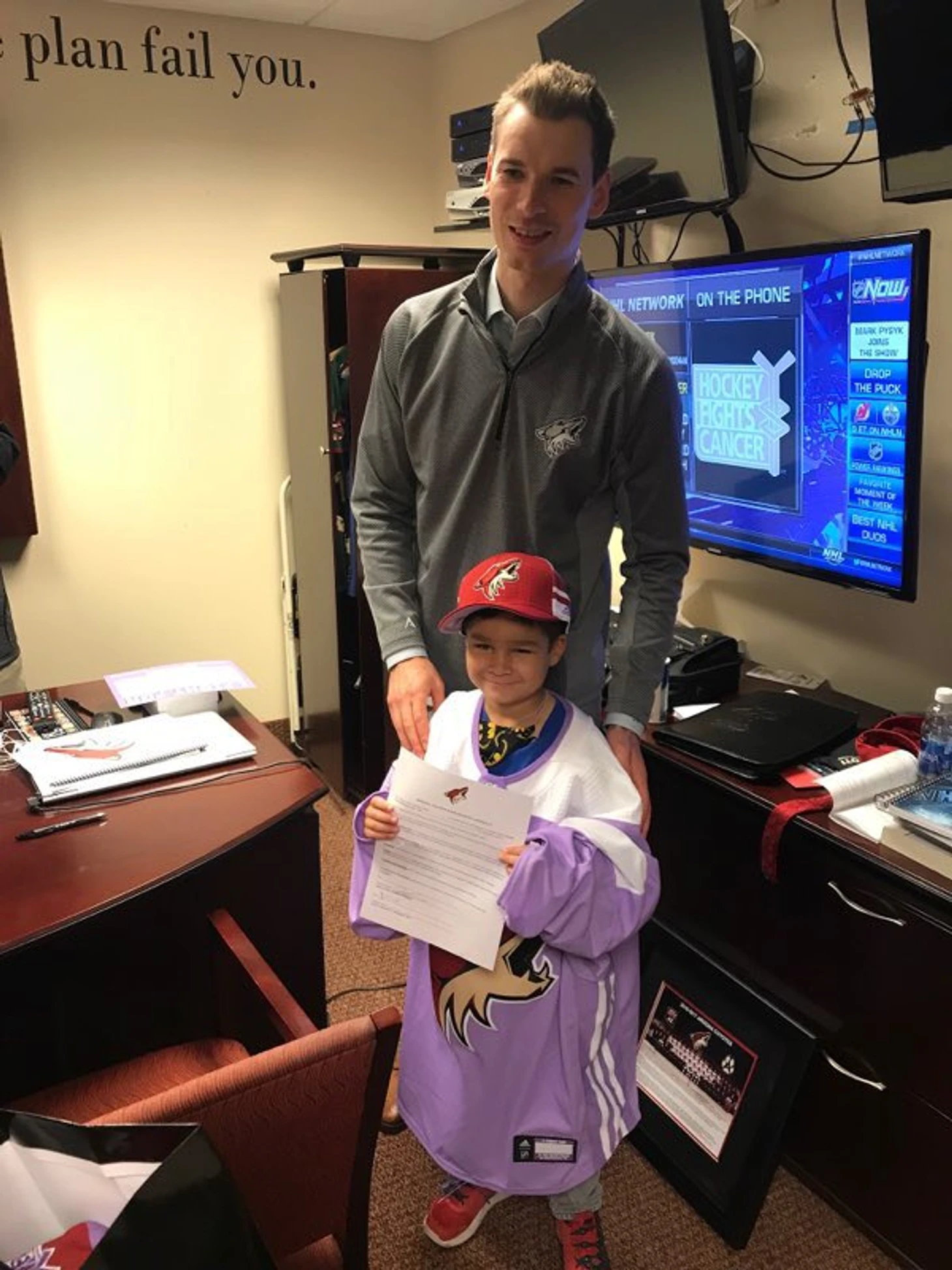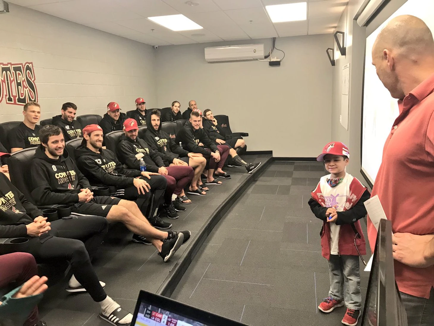 Маленькому Брюсу 7 лет, у него лейкемия. Он болеет за «Аризону», и чтобы поддержать мальчика, клуб на один матч сделал его помощником тренера. Брюс выступил с речью на собрании перед игрой с «Каролиной» и пообщался с хоккеистами на разминке перед матчем.