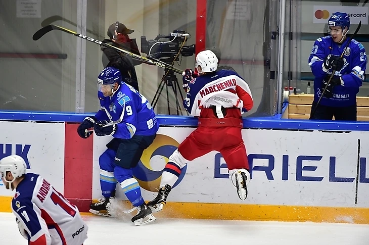 На 2 минуте хозяева сравняли счёт.Жайлауов и Сен-Пьер убежали к армейским воротам и казахский нападающий забил шайбу.Счёт стал 1:1.Через минуту Светлаков за толчок на борт Орехова был удалён.Хозяева использовали большинство-Вэй вывел хозяев вперёд с передачи Сен-Пьера.Счёт сал 2:1.На 4 минуте Акользин был удалён за задержку соперника.На 5 минуте Ничушкин бросил,а Киселевич и петров не смогли добить шайбу в ворота.На 7 мнуте Жарков не смог добить айбу после наброса на пятачок.Через минуту Кузьмеко бросал после прохода.На 10 минуте Вэй делает дубль после паса Доуса и дальнего броска Даллмана.Счёт стал 3:1.На 13 минуте Дитц два раза подряд бросал по воротам.В ответной атаке Капризов бросил по воротам.На 14 минуте Киселевич и Ничушкин не смогли протолкнуть шайбу просле дальнего броска.На 16 минуте Пашнин за задержку Шевченко был удалён.На 17 минуте хозяева опять реализовали большинство-после умного паса Вэя Сен-Пьер забил шайбу.Счёт стал 4:1.На 18 минутебросок Светлакова отразил Кудрявцев.В конце периода Никулин бросил и попал в маску Сорокина.