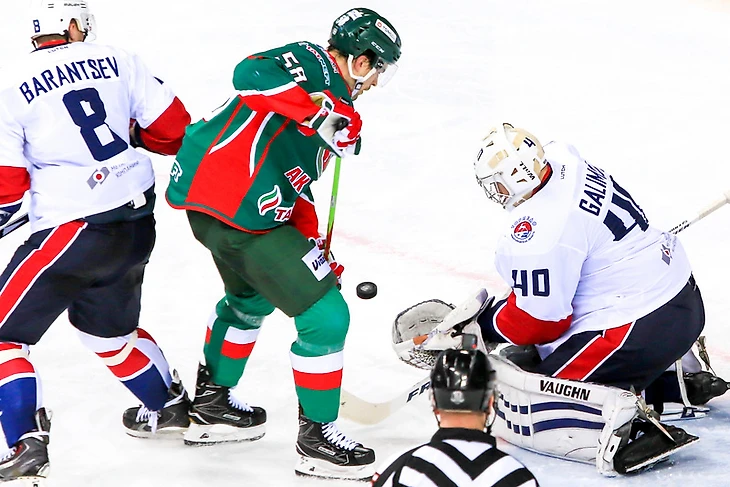 Чем меньше оставалось времени до окончания третьего периода, тем больше оказывалось давление на владения Галимова. Косов с Архиповым убегали вдвоем против защитника гостей, но нападающему казанского клуба чуть-чуть не хватило точности, чтобы переправить шайбу в ворота. За две с небольшим минуты наставник «Ак Барса» Зинэтула Билялетдинов пошел ва-банк, заменив вратаря на шестого полевого игрока. И, надо признать, хоккеистам нижегородского клуба пришлось очень непросто, так как хозяева размашисто атаковали и старались до верного разыграть шайбу. Только за счет остановки игры Станиславом Галимовым пятерка автозаводцев смогла замениться и перевести дух.