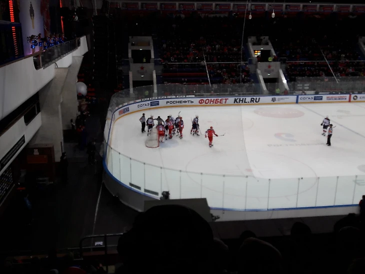 Перед матчем горели ярко красные и синие фонари, которые светили мне в глаза. На поле показался талисман армейцев, которые проехал по полю. Обычная традиция, мне понравилось. Я также многое узнал из хоккейных порядков, по крайней мере, болельщиков ЦСКА. Например, когда армейцы забивают довольно быстро 3 шайбы, то фанаты кидают кепки на лёд. О правилах игры я знал довольно таки мало. Вроде бы, по 6 хоккеистов от команды и ничего особенного. Катают шайбу себе и всё. А вот нет. Как раз мой друг мне и пояснил многие правила, что для меня хоккей стал чем-то большим.