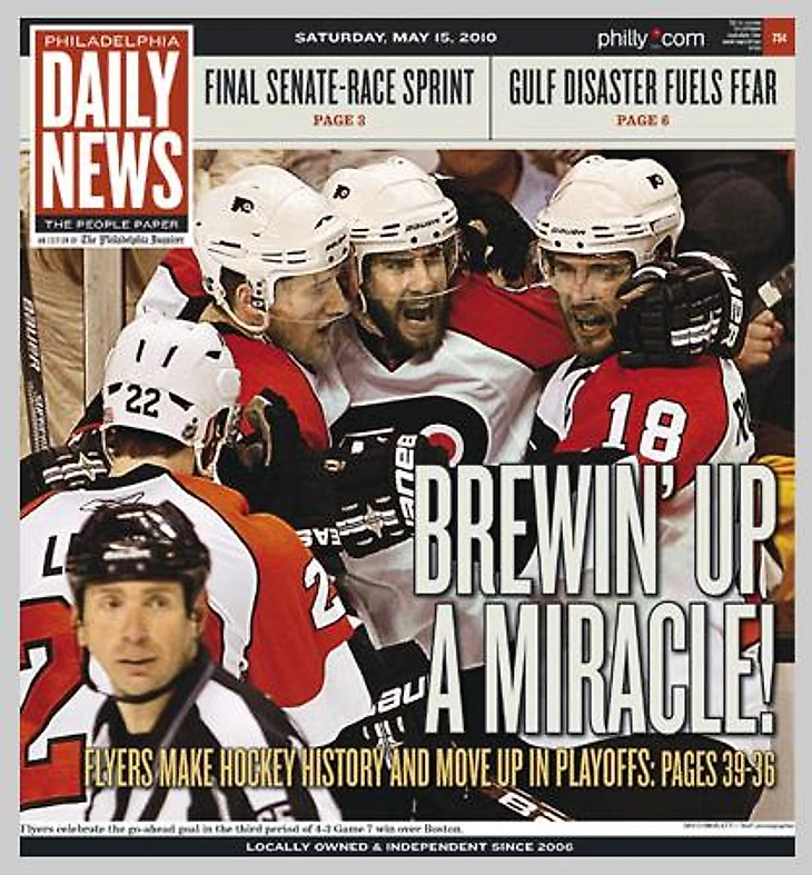 Квинтэссенцией того плей-офф стала серия между «Филадельфией Флайерс» и «Бостон Брюинс». Противостояние между «Разбойниками с Большой Дороги» и «Большими Злыми Мишками» не бывает скучным, но весной 2010-го команды превзошли сами себя. Первые три матча остались за «Бостоном». И хотя, в целом, после тех игр «Филадельфия» заслуживала большего, чем оглушительные 0-3, перевес «Медведей» нельзя не признать справедливым. По ходу серии "Флайерс" потеряли голкипера Брайана Буше - при всех особенностях, именно его уверенная игра в серии буллитов в последнем матче регулярки с "Рейнджерс" вывела клуб в плей-офф. Место в воротах занял Майкл Лейтон. На 60-й минуте четвертого матча «Летчики» уже готовились перевести дух – счет 4:3 оставлял их в игре. Но против такого сценария выступал великий Марк Рекки – 4:4 за 32 секунды до конца основного времени. Не существует чисел, способных охарактеризовать количество сгоревших нервных клеток болельщиков «Флайерс», вызванных колебанием чаши весов в овертайме. Особенно тревожно было в меньшинстве после удаления Дэррола Поу. Живительной инъекцией стала грамотная игра Симона Ганье под воротами Раска – 5:4 за 5:20 до конца первого овертайма вернули «Филадельфию» в игру. Возможно, именно этот момент стал переломным в серии. В последующих двух матчах «Медведи» сподобились лишь на одну шайбу – 4:0 и 2:1 в пользу «Летчиков». 3-3 в серии и все начинается сначала. Но уже без права на ошибку.