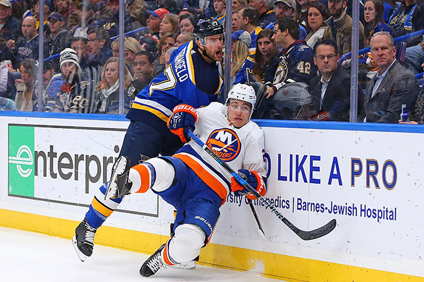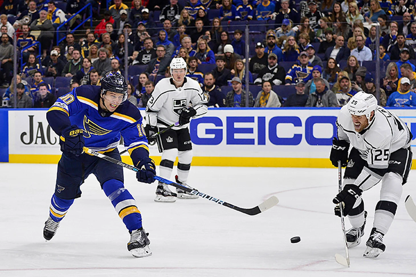 «Блюз» находятся в тройке самых бросающих команд сезона, но атаковать ворота они начинают сразу при входе в зону. За подбором в углы устремляются габаритные Торнбурн, Яшкин, Пяярви и Бродзяк, задача которых сохранить шайбу, а не придумать что-то в атаке. Если «Лайтнинг» переносят своего зрителя в 80-е и своими перепасовками показывают, какими были «Эдмонтон» и сборная СССР, то с «Сент-Луисом» Йео ты возвращаешься в конец 90-х на серию плей-офф с участием «Далласа», где в первую очередь хоккеист не должен был ошибаться. Звезды «Тампы» за осень приучили к тик-так-тоу шоу, а большая часть голов «Блюз» – это результат отскоков, добиваний и ошибок, вымученных непрерывной толкотней соперников.
