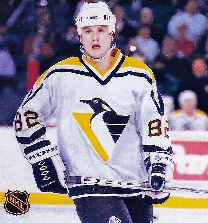 Ну как же не поставить во главу этого выпуска непревзойденного Яромира Ягра? Он приехал покорять НХЛ в далеком 1990 году! Играет до сих пор! Сыграл 1724 матча, набрав 1920 очков! Но, я не буду много писать про Яромира, в скором времени я подготовлю отдельный выпуск, про лучшего чеха в истории НХЛ. А если говорить об этом фото, то сделано оно в промежутке между 1998 и 2001 годах, когда Ягр капитанил в Пингвинз.