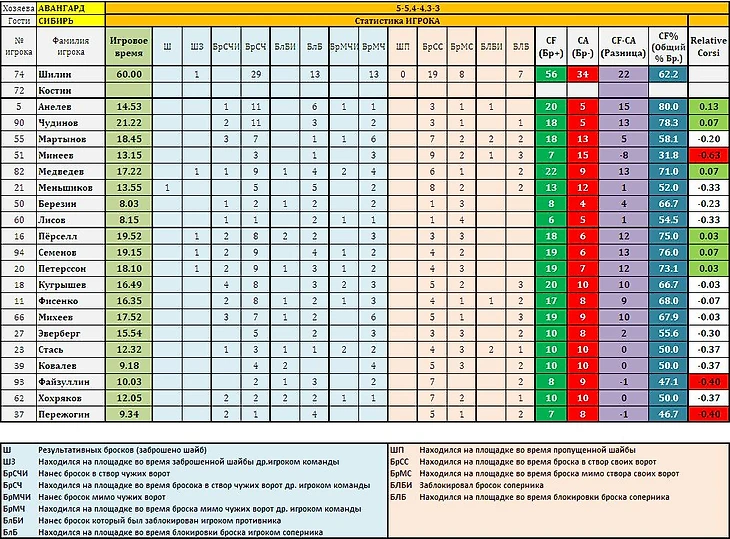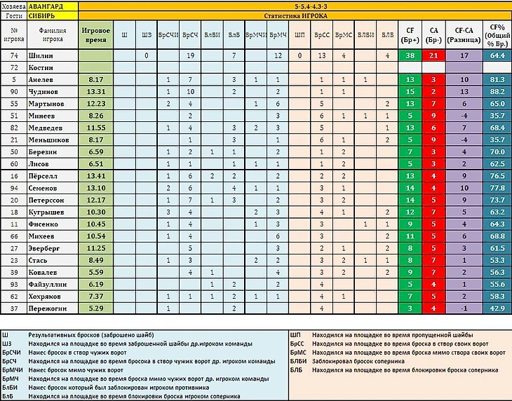 Разница составила 13 ТТД в пользу Авангарда. Команды показали низкоинтенсивный матч, сделав 109 ТТД на двоих. Сухая статистика говорит нам о преимуществе Авангарда в матче.