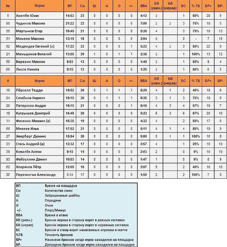 защитники: Минеев, Меньшиков у обоих по (-4);