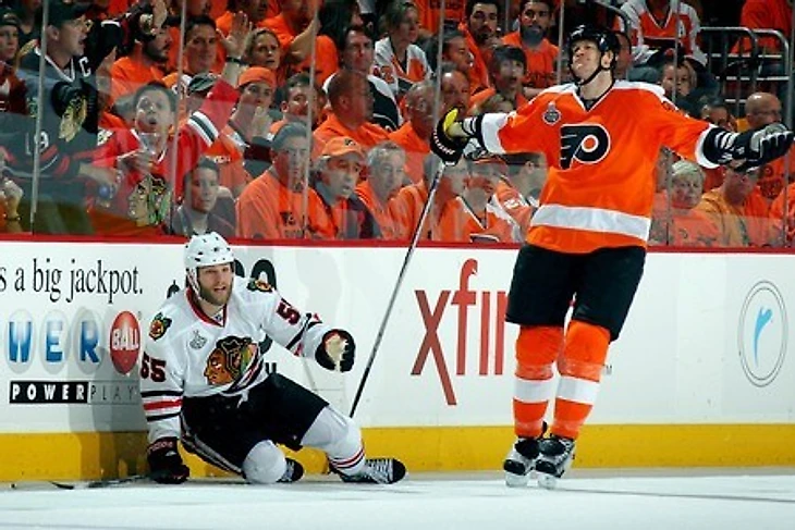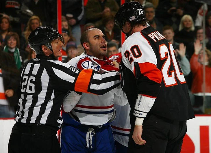 Пронгер деликатно доказывает неправоту Скотта Гомеса. Но поговорим о худшем моменте в карьере Пронгера. В 2011 году завершилась карьера одного из лучших защитников всех времен. Пронгер получил сильное повреждение глаза, которое поставило крест на карьере, хотя он подписывал контракт с Филадельфией, по которому должен был играть до 2017 года. Как вспоминает сам Пронгер: «…Со мной произошло следующее: у меня были глаза 30-летнего человека, я повредил их, и теперь, по словам доктора, у меня зрение 60-летнего. Периферическое зрение стало не очень хорошим. Раньше у меня было все в порядке с так называемым шестым чувством, а теперь я не могу заметить человека, который выходит откуда-то со стороны. Мои дети постоянно меня пугают. У меня пропало ощущение, что я знаю, кто где находится».
