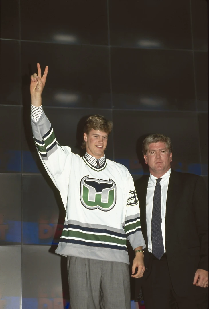 Своей игрой за Питерборо Пронгер заинтересовал руководство Хартфорд Уэлерз и они задрафтовали его в 1993 году, под общим вторым номером. Напомню, что выше Пронгера на том драфте был Александр Дэйгл, как показала история, один из худших первых номеров драфта в истории НХЛ.