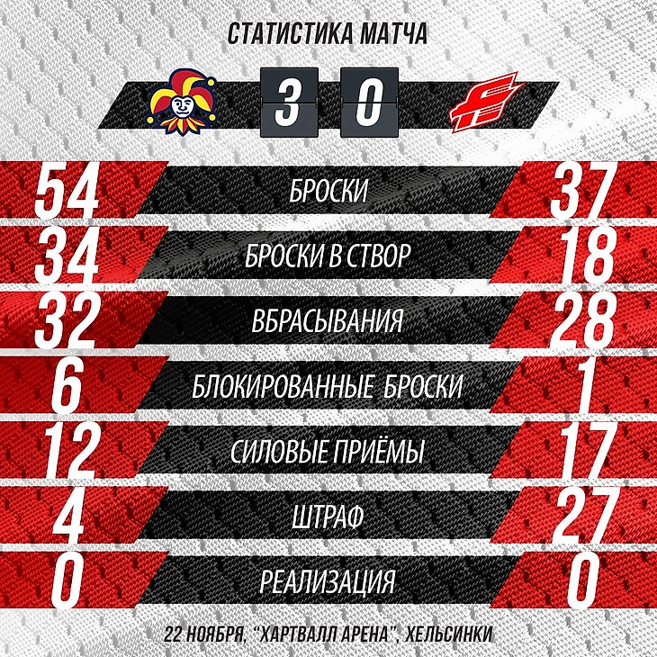 Разница составила 16 ТТД в пользу Йокерита. Команды показали низкоинтенсивный матч, сделав 88 ТТД на двоих. Другого слова, кроме провал не подобрать, даже сухая статистика «кричит» об этом.
