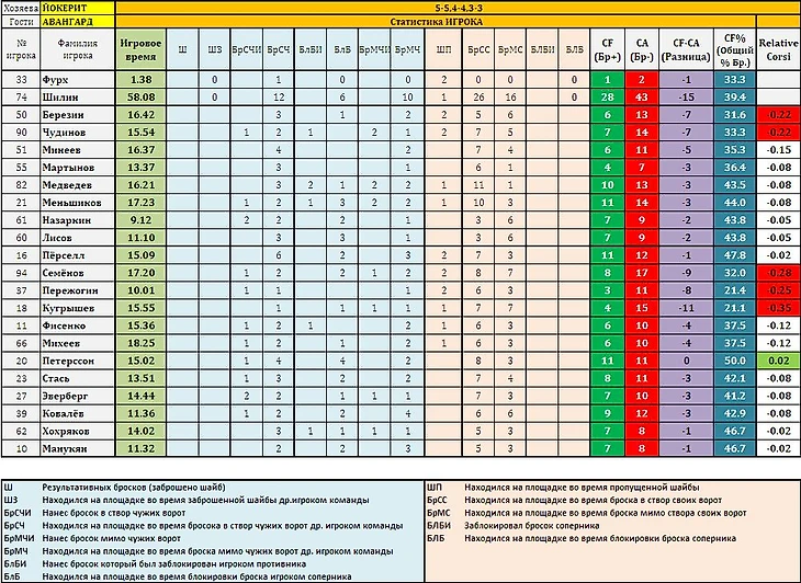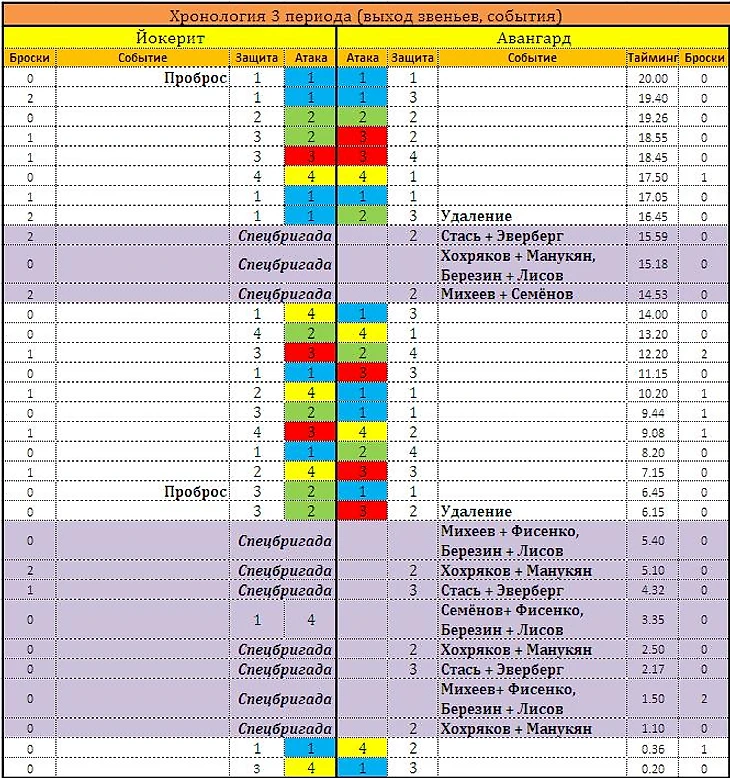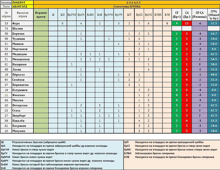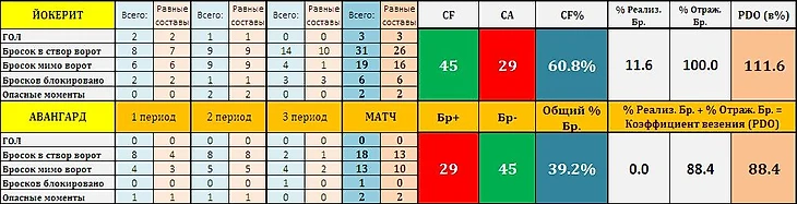 Время команд в атаке за матч (I,II,III): Йокерит – 12:05, Авангард – 08:35