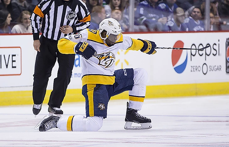 Пи Кей Суббан стал главным героем гостевого матча против «Ванкувера» – «Предаторс» разгромили соперника 7:1, а защитник отметился чумовым голом из центрального круга вбрасывания.