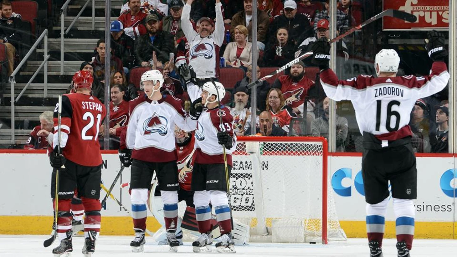 "Аризона Койотс"-"Колорадо Эвеланш" 2:6.2 шайбы в составе "лавин" забросил Карл Сёдерберг,по 2 результативные передачи отдали Александр Керфут и Марк Барберио,Мэттью Нието набрал также 2 очка (1+1),Наиль Якупов забросил шайбу.Никита Задоров сделал результативную передачу,Семёе Варламов отразил 32 броска.У хозяев Дерек Степан забросил обе шайбы.Во втором периоде Зак Риналдо подрался с Эриком Джонсоном,а Джош Арчибальд с Натаном Маккинноном.Оба последних драчуна были удалены до конца матча.