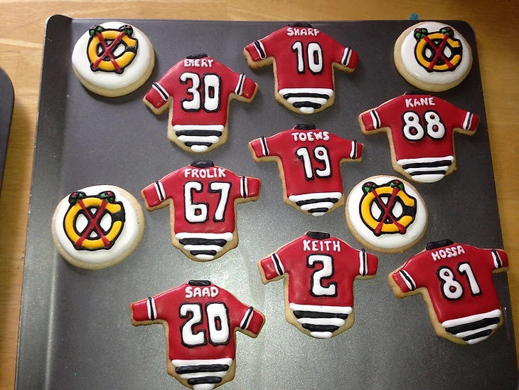 Одной из главных традиций американцев на Рождество- это выпечка печений. Вот такие печенья можно увидеть на столах болельщиков Чикаго.