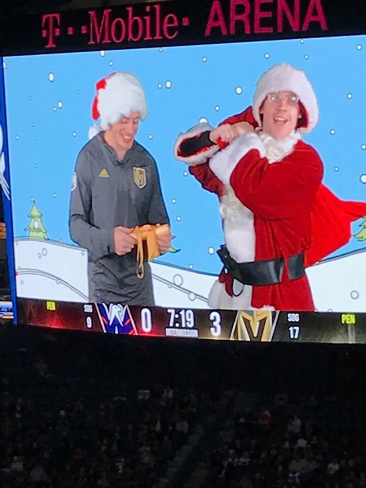 Хоккеист Вегас Голден Найтс Нейт Шмидт видимо попросил у Санты 3 безответные шайбы в ворота своей бывшей команды- Вашингтон Кэпиталз. В канун Рождества все мечты сбываются!
