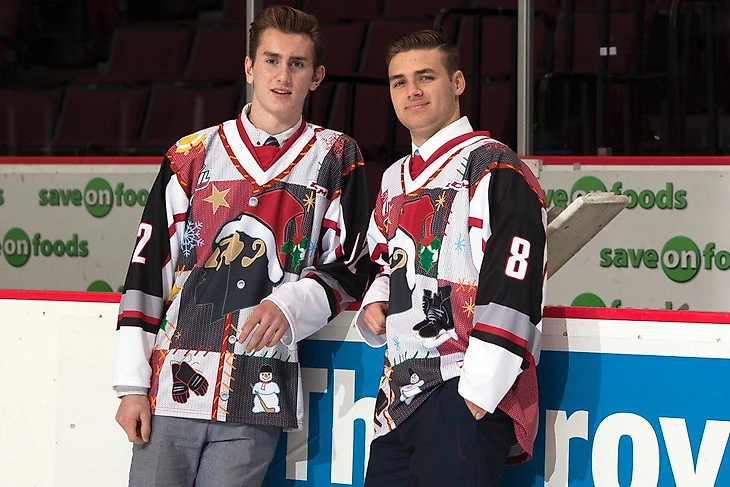 В юниорских лигах Северной Америки так же любят принаряжаться к Рождеству. Вот рождественский свитер Ванкувер Джайантс из Западной Хоккейной Лиги (WHL).