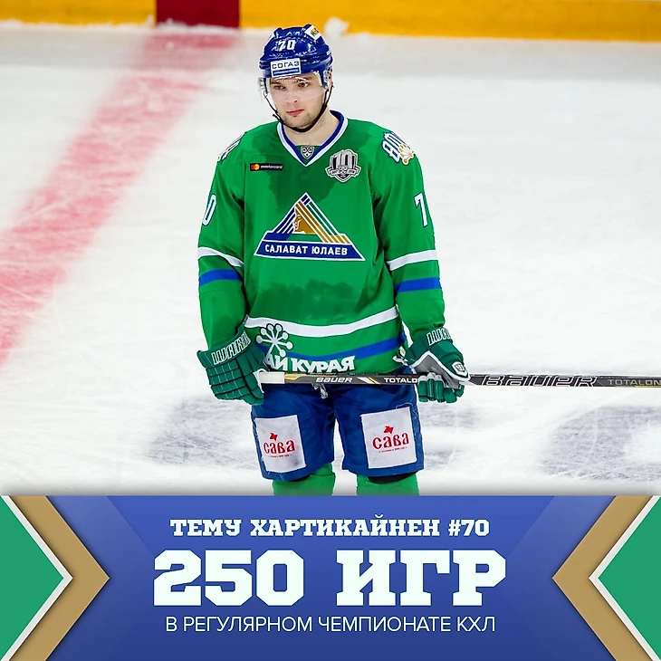 И все в зелёной форме с кураем, а ещё он является вторым бомбардиром «Салавата» во время выступления в КХЛ сразу после Александра Радулова.