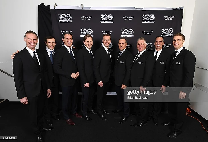 В честь векового юбилея НХЛ были опеределены 100 лучших игроков в истории лиги. Подавляющее большинство были североамериканцами, но и без европейцев само собой не обошлось, коих было 14 человек - 2 чеха (Ягр и Гашек), 2 словака (Штясны и Микита*), 4 шведа (Лидстрем, Форсберг, Сальминг, Сундин), 2 финна (Курри и Селянне), 4 россиянина (Федоров, Овечкин, Буре и Дацюк).