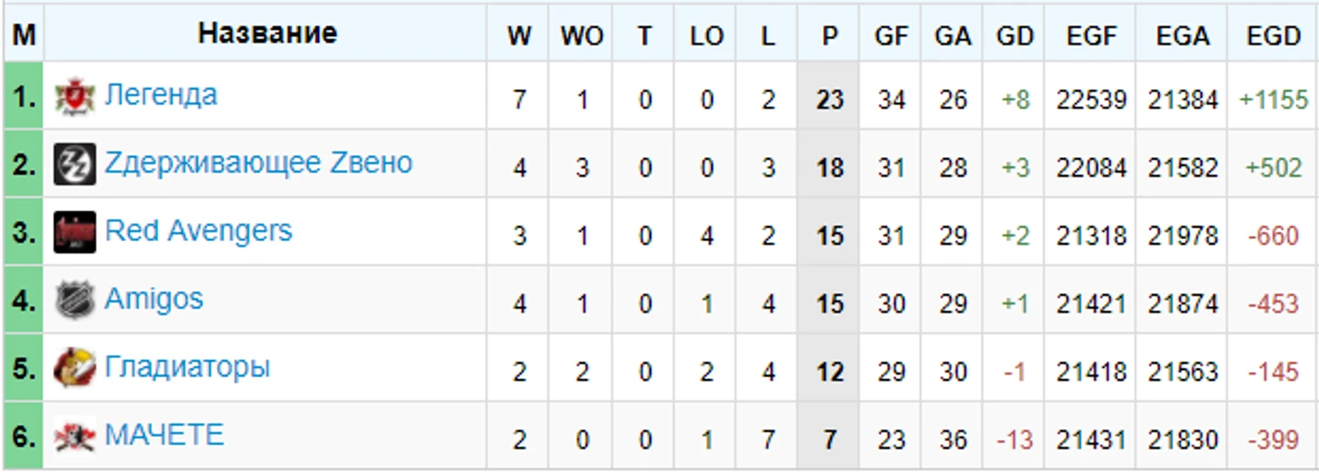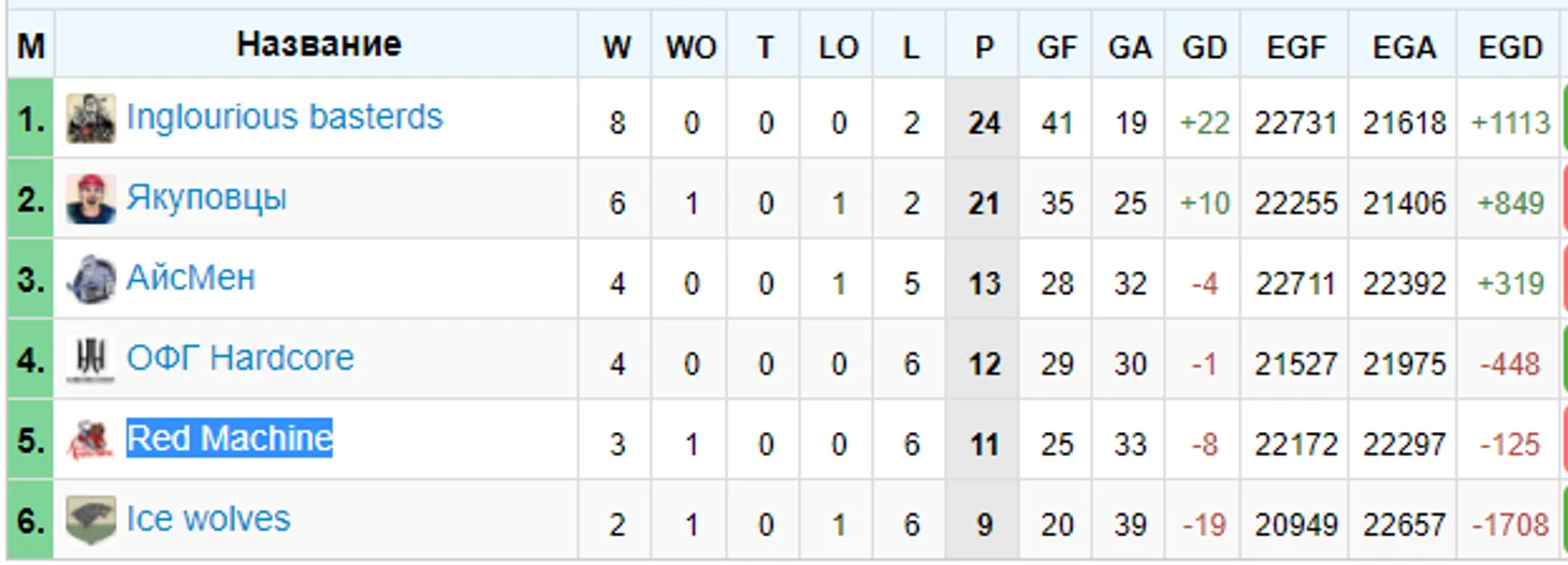 С чем мы из и поздравляем!!! 8 (!) побед и лишь два поражения, 41 (!!) победа в парах и лишь 19 поражений. Хорошо провели этап Якуповцы, отставшие лишь на три очка. Провалили второй круг Ice wolves, потерпев поражения во всех (!!!) 5 встречах. Как результат - последнее мечто, с перспективами вылета во вторую лигу. А вот новички Red Machine напротив значительно прибавили, набрав 11 очков во втором круге, против 0 очков в первом. Молодцы, что не опустили руки!