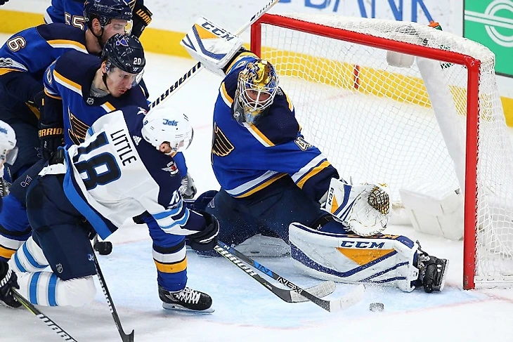 Матч месяца: по непонятной прихоти составителей календаря два матча «Виннипега» против «Блюз» прошли с разницей в 24 часа сначала в Сент-Луисе, а потом в Манитобе. Поэтому их вполне можно воспринимать как шесть периодов одной игры. «Первый тайм» остался за «блюзменами», но когда в процессе обновляется вратарский клубный рекорд по количеству сейвов в матче на 0, то можно сказать, что «Джетс» играли довольно неплохо. Но 48 бросков по воротам Картера Хаттона оказалось недостаточно. В матче в Виннипеге сухим матчем ответил Коннор Хеллибак, отразивший 24 броска по своим воротам, а подопечные Пола Мориса снова устроили обстрел ворот «Сент-Луиса» и на этот раз из 46 бросков 4 оказались в сетке.