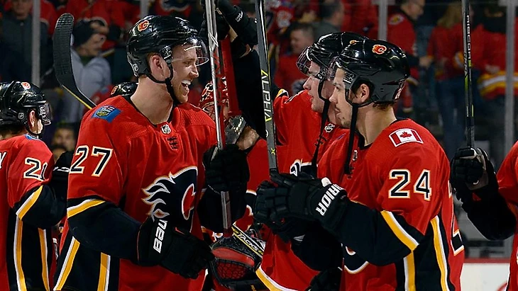 "Калгари Флэймз"-"Анахайм Дакс" 3:2.Победную шайбу за 15 секунд до конца встречи забросил Дуги Хэмилтон.У "огоньков" 2 очка (1+1) набрал Майкл Ферланд,Майк Смит отразил 27 бросков.Во втором периоде Гарнет Хэтауэй подрался с Дереком Грантом,а Сэм Беннет с Джошем Мэнсоном.Хозяева выиграли 3 игру подряд.