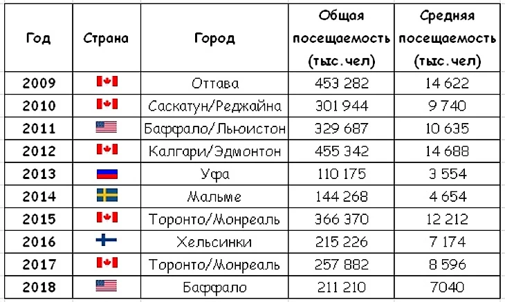 При этом стоит учесть, что нынешнему турниру очень помог матч между США и Канадой на открытом воздухе, собравший почти 45 тысяч зрителей. Если бы его не было, то общая посещаемость оказалась бы меньше 200 тысяч.