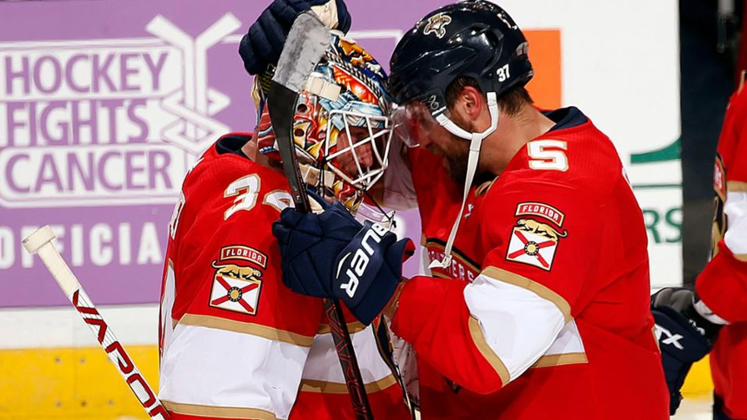 "Флорида Пантерз"-"Вегас Голден Найтс" 4:3(ОТ).Победу хозяевам в овертайме принёс Аарон Экблад.У хозяев 3 очка (1+2) набрал Александр Барков,Евгений Дадонов забросил одну шайбу,Джеймс Раймер отразил 33 броска.У гостей 2 результативны епередачи на счету Эрика Хаулы.