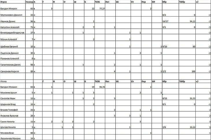 Вторые же просто порадовали. За всю игру вспомню два-три острых момента у наших ворот, в которых приходилось вступать в игру Мише, однажды он взял мини-буллит. Да, соперник откровенно пижонил – пасы за спину, броски из-за ворот, недоработка в защите, много ненужных удалений. Но мы их в итоге прилично напугали, и может даже проучили, жаль, что не получилось зацепиться за результат.