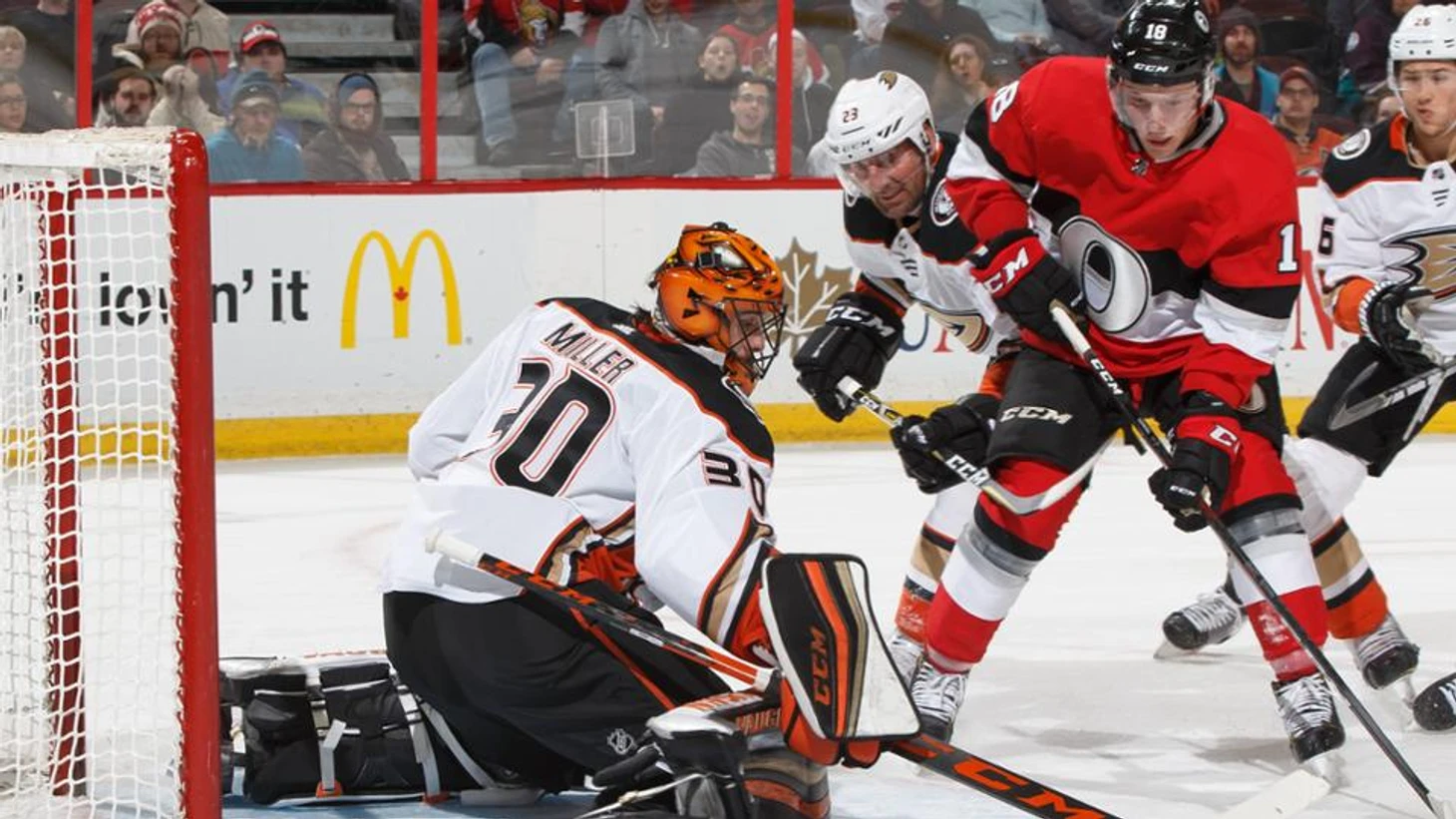 "Оттава Сенаторз"-"Анахайм Дакс" 2:1(ОТ).Эрик Карлссон в овертайме принёс победу хозяевам.В основное время Бобби Райан и Райан Кеслер обменялись заброшенными шайбами,Майк Кондон отразил 30 бросков."Сенаторы" прервали серию из 6 поражений подряд.