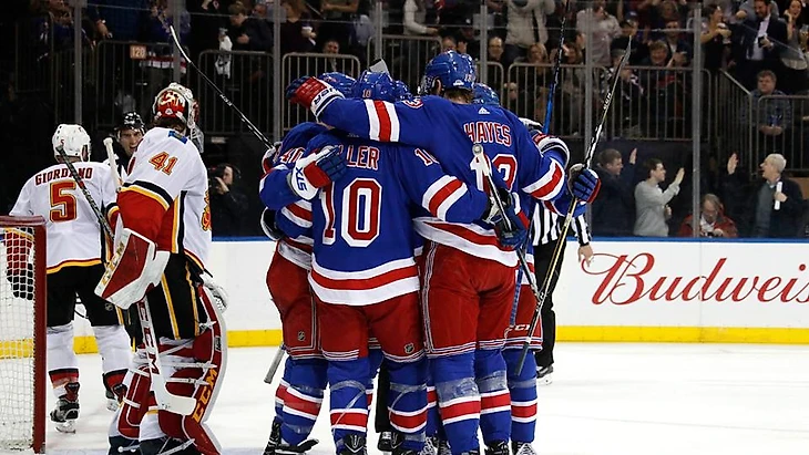 "Нью-Йорк Рейнджерс"-"Калгари Флэймз" 4:3.Джей-Ти Миллер отдал 2 результативные передачи,Кевин Хэйз набрал 2 очка (1+1),Хенрик Лундквист отразил 28 бросков."Рейнджеры" прервали серию из 4 подряд поражений.