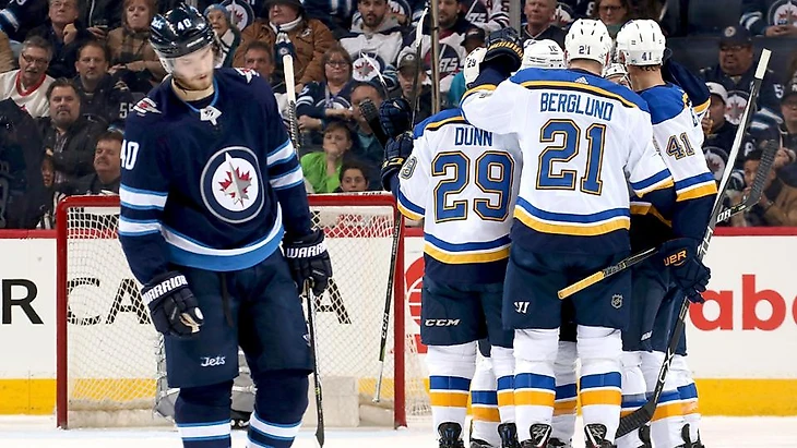 "Виннипег Джетс"-"Сент-Луис Блюз" 2:5.Владимир Тарасенко забросил 2 шайбы,Джейден Шварц и Александр Стен набрали по 2 очка (1+1),Джейк Аллен отразил 20 бросков.У хозяев Кайл Коннор набрал 2 очка (1+1).
