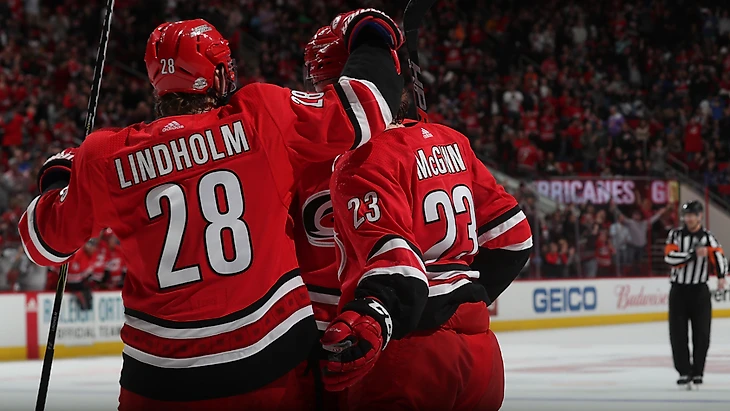 "Каролина Харрикейнз"-"Колорадо Эвеланш" 3:1.Брок Макгинн забросил 2 шайбы,Элиас Линдхольм отдал 2 результативные передачи,Кэм Уорд отразил 29 бросков.