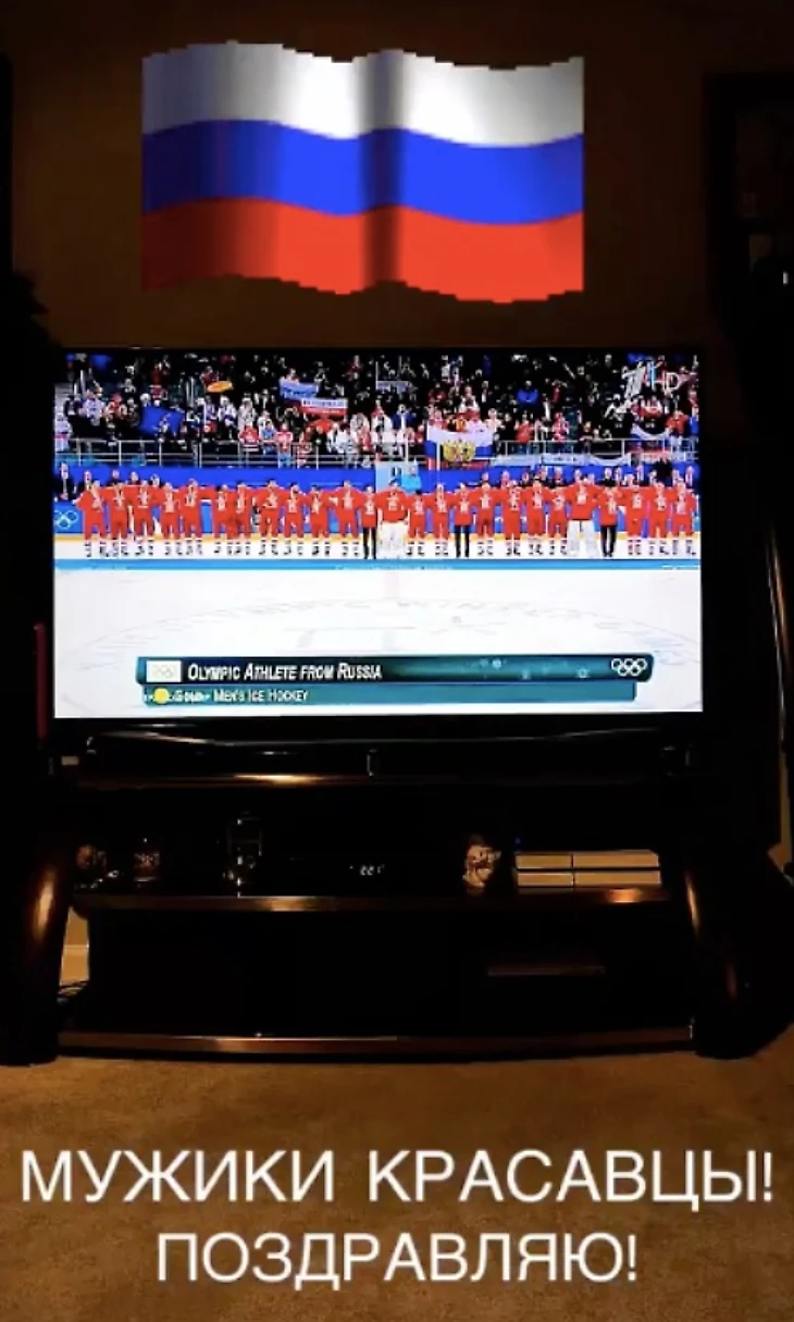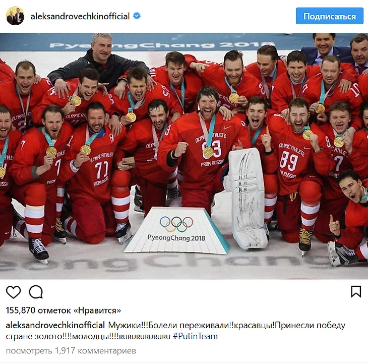 Алекс Овечкин, который по-прежнему явно рассержен из-за решения НХЛ не позволять своим спортсменам сыграть в Пхенчхане, поздравил своих соотечественников, опубликовав победное фото в Instagram.