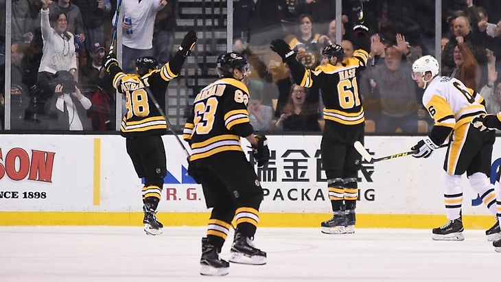 "Бостон Брюинз"-"Питтсбург Пингвинз" 8:4.Давид Крейчи забросил 3 шайбы,Давид Пастрнак набрал 3 очка (1+2),Тори Круг и Рик Нэш набрали по 2 очка (1+1),Брайан Джионта,Райли Нэш,Брэд Маршан,Здено Хара и Чарли Макэвой отдали по 2 результативные передачи,Туукка Раск отразил 22 броска.У гостей Олли Маатта забросил 2 шайбы,Фил Кессел набрал 2 очка (1+1),Евгений Малкин отдал 2 результативные передачи.Во 2 периоде Здено Хара подрался с Джейми Олексиаком."Пингвины" проиграли 3 матч подряд.