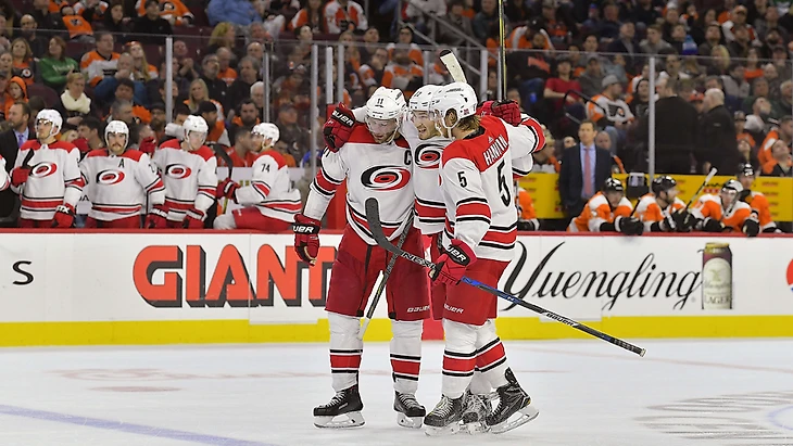 "Филадельфия Флайерс"-"Каролина Харрикейнз" 1:4.Джастин Уильямс набрал 3 очка (2+1),Себастьян Ахо набрал 2 очка (1+1),Кэм Уорд отразил 21 бросок."Ураганы" прервали серию из 6 поражений подряд.