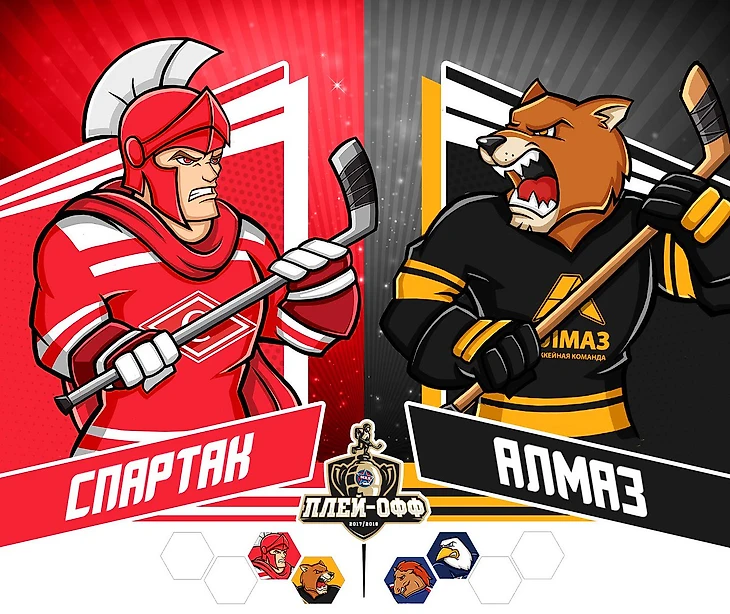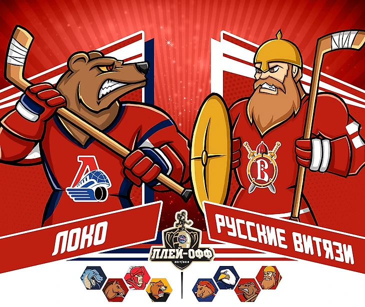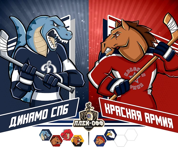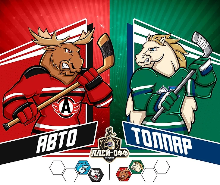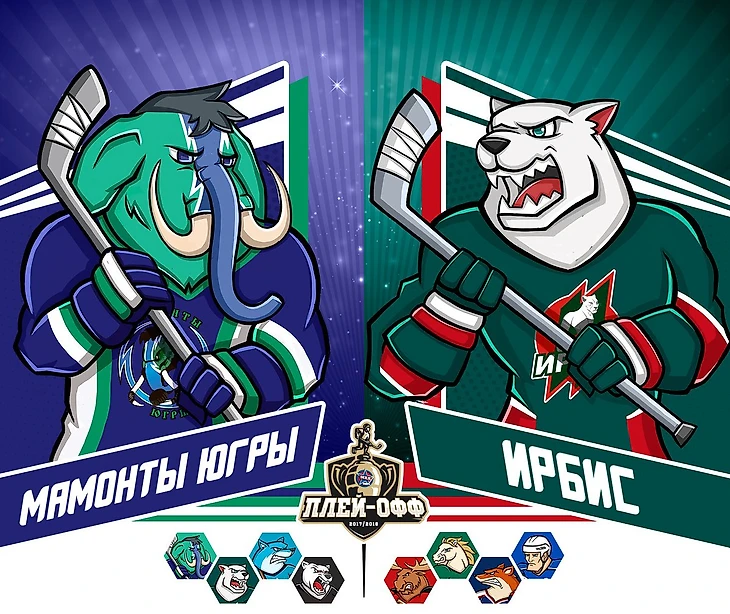 МХЛ подготовила интересные графические превью к сериям плей-офф Кубка Харламова. В качестве символов клубов были изображены маскоты клубов, либо ассоциирующиеся с ними животные и персонажи.