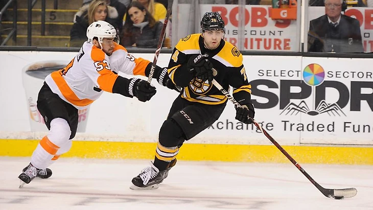"Бостон Брюинз"-"Филадельфия Флайерс" 3:2.Победную шайбу за 22 секунды до конца встречи забросил Брэд Маршан.Давид Пастрнак и Здено Хара отдали по 2 результативные передачи,Туукка Раск отразил 31 бросок."Бостон" выиграл 5 матч подряд.