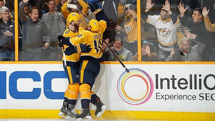 "Нэшвилл Предаторз"-"Анахайм Дакс" 4:2.Виктор Арвидссон и Райан Джохансен набрали по 2 очка (1+1),Филип Форсберг отдал 2 результативные передачи,Пекка Ринне отразил 31 бросок.У гостей Рикард Ракелл забросил обе шайбы с передач Райана Гецлафа.Во 2 периоде Райан Джохансен подрался с Райаном Кеслером."Хищники" выиграли 10 матч подряд.