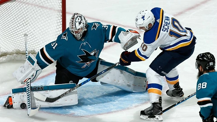 "Сан-Хосе Шаркс"-"Сент-Луис Блюз" 2:0.Томаш Хертль и Миккел Бёдкер принесли победу "акулам",Мартин Джонс отразил 16 бросков и сыграл 4 сухой матч в сезоне.