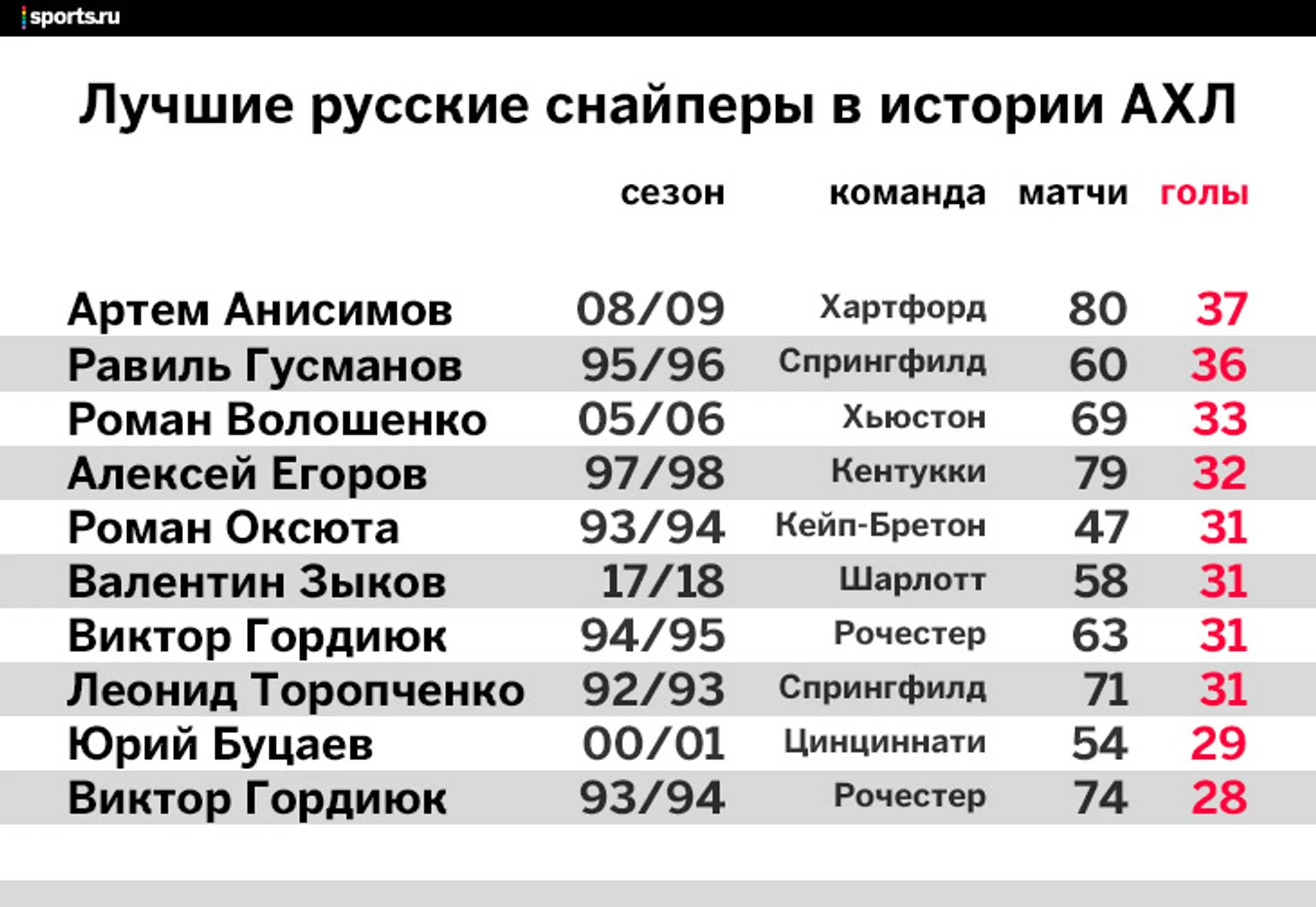 Лучшими снайперами АХЛ за последние десять лет становились Уэйд Меган, Фрэнк Ватрано, Теему Пулккинен, Зак Бойчак, Тайлер Джонсон, Кори Конахер, Колин Макдональд и Александр Жиру. В НХЛ по-настоящему получилось только у Джонсона из «Тампа-Бэй», но он взял свой титул в АХЛ в локаутный сезон – и это немного не то. Конахер блеснул, съездил в Европу и опять болтается между двумя лигами. Бойчак забил 36 голов за фарм-клуб «Каролины» четыре года назад – в этом сезоне он писал свои твиты из Братиславы. Алекс Жиру забивал по 50-60 голов, но потом не проявил себя даже в рижском «Динамо». Какой тут «Вашингтон»?! Пулккинен и сейчас в АХЛ, а Меган (33 шайбы в прошлом чемпионате) провел в этом сезоне ровно один матч за «Блюз».