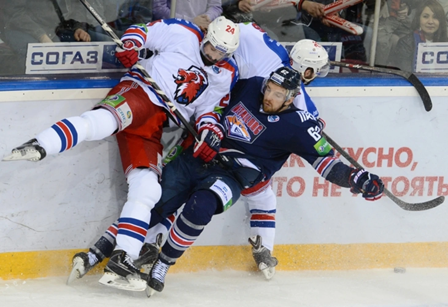 "Металлург"Мг - "Лев" - 44 шайбы.Сезон 2013/2014,финал Кубка Гагарина Эта финальная серия получилась одной из самых ярких в истории КХЛ.Помимо этого,что за Кубок Гагарина впервые боролся иностранный клуб,она стала еще и настоящим голевым пиршеством."Лев" спас шестой матч в овертайме,но в решающей седьмой игре был разбит Магнитогорске (4:7).Этот финал пока остается самым результативным КХЛ.