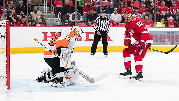 "Детройт Ред Уингз"-"Филадельфия Флайерс" 5:4(Бул).Франс Нильсен в серии булитов принёс победу хозяевам.Дилан Ларкин набрал 3 очка (2+1),Евгений Свечников забросил одну шайбу.У гостей Клод Жиру отдал 3 результативные передачи,Шейн Гостибер набрал 2 очка (1+1).Джимми Ховард и Петр Мразек отразили по 27 и 16 бросков соответственно."Детройт" прервал серию из 10 поражений подряд.
