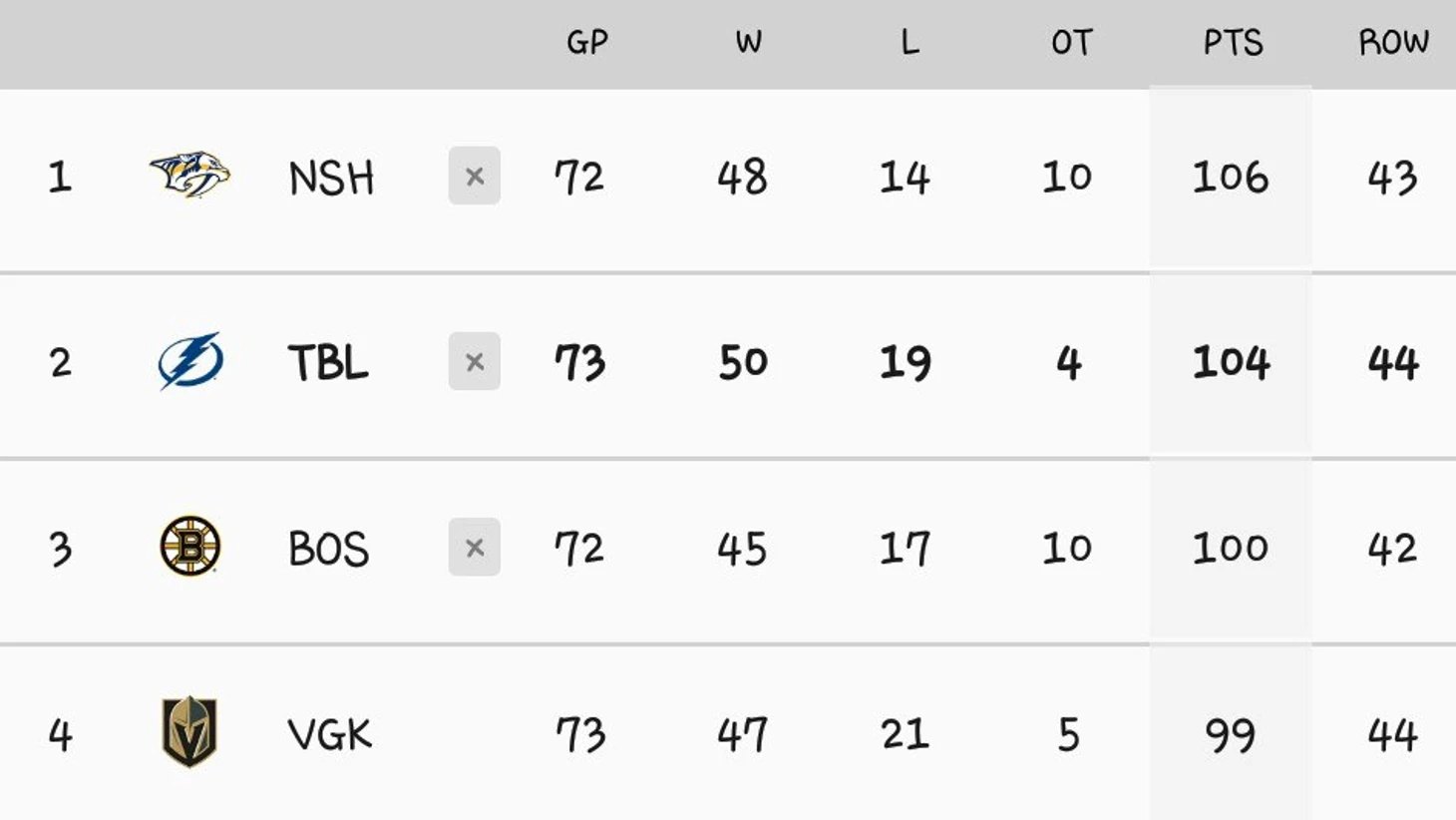 Сент-Луис имеет игру в запасе и по потерянным очкам догоняет Кингз, но календарь не подарок. Вроде и решившие вопросы с плей-офф Вегас и Вашингтон и Чикаго, который наоборот решил задачу пролететь мимо, но просто так очки им отдавать не будут.