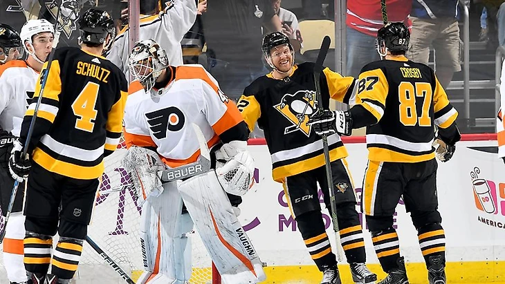 "Питтсбург Пингвинз"-"Филадельфия Флайерс" 5:4(ОТ).Брайан Раст в овертайме принёс победу хозяевам.Джастин Шульц отдал 3 результативные передачи,Сидни Кросби набрал 2 очка (1+1),Фил Кессел отдал 2 результативные передачи,Евгений Малкин забросил одну шайбу,Мэтью Мюррей отразил 41 бросок.У гостей Джордан Уил набрал 3 очка (1+2),Шейн Гостибер отдал 2 результативные передачи.