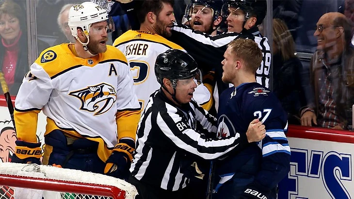"Виннипег Джетс"-"Нэшвилл Предаторз" 5:4(Бул).Марк Шайфли в серии буллитов принёс победу хозяевам.Кайл Коннор набрал 3 очка (1+2),Брайан Литтл и Блэйк Уилер набрали по 2 очка (1+1).У гостей Райан Эллис,Виктор Арвидссон и Кайл Тёррис набрали по 2 очка (1+1).Коннор Хеллебайк и Юсе Сарос отразили по 32 и 43 броска соответственно."Виннипег" выиграл 5 матч подряд.