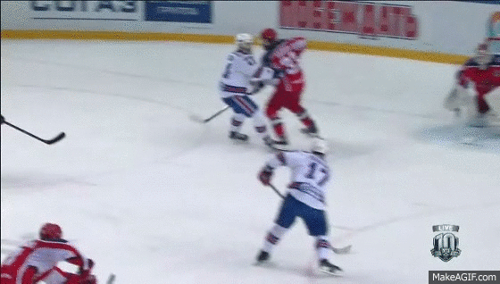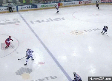 Как противодействовать такой тактике? Можно действовать максимально просто, вбрасывая шайбу в зону и бороться за нее уже там. Можно играть на опережение, если нападающий атакующей команды пройдет с фланга и сможет оказаться за спиной защищающейся тройки нападающих. В эпизоде выше игрок СКА на левом фланге должен был подключиться намного раньше и принять шайбу уже ближе к красной линии. Но он задержался в своей зоне и резко замедлил развитие атаки.