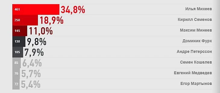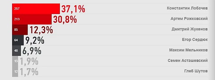 завершилось голосование болельщиков за лучшего игрока сезона в составе "Авангарда": со внушительным отрывом победил нападающий Илья Михеев - у него 34,8% голосов! Поздравляем нашего форварда! В целом голоса распределились следующим образом: