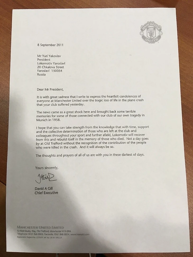 «Новость о гибели хоккеистов стала шоком для всех нас. Произошедшая трагедия напомнила нам 1958 год, когда почти все футболисты «Юнайтед» погибли в авиакатастрофе под Мюнхеном.