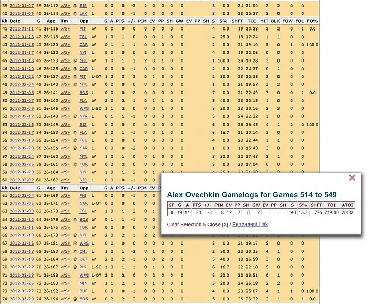 Факт: в сезоне 2011/12, когда Овечкин закончил с показателями 78, 38+27=65. С Бекстремом в составе 42, 19+16=35. Без Бекстрема в состава 36, 19+11=30. Даже калькулятор не нужен в среднем 5 очков в шести играх.