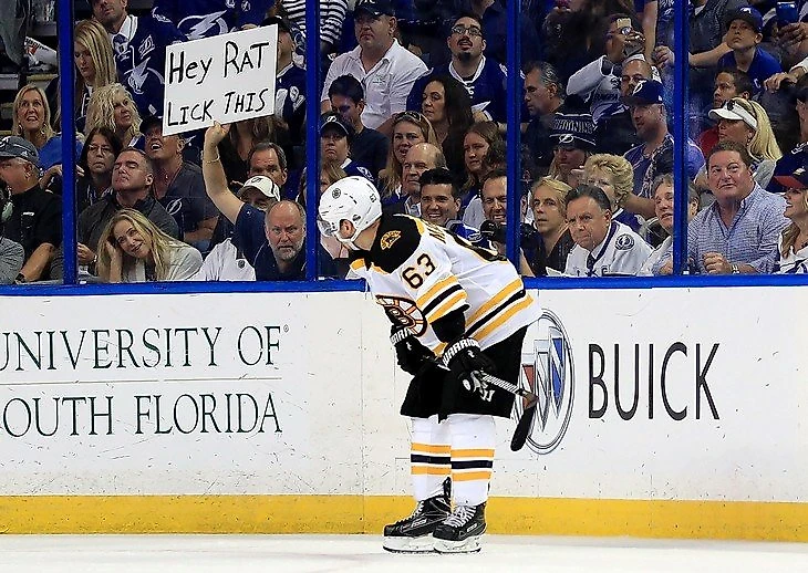 Брэд Маршанд продолжает бесить соперников любыми способами – в четвертом матче серии против «Тампы» (второй раунд Кубка Стэнли) нападающий «Бостона» лизнул Райана Кэллахана, едва не спровоцировав новую драку.