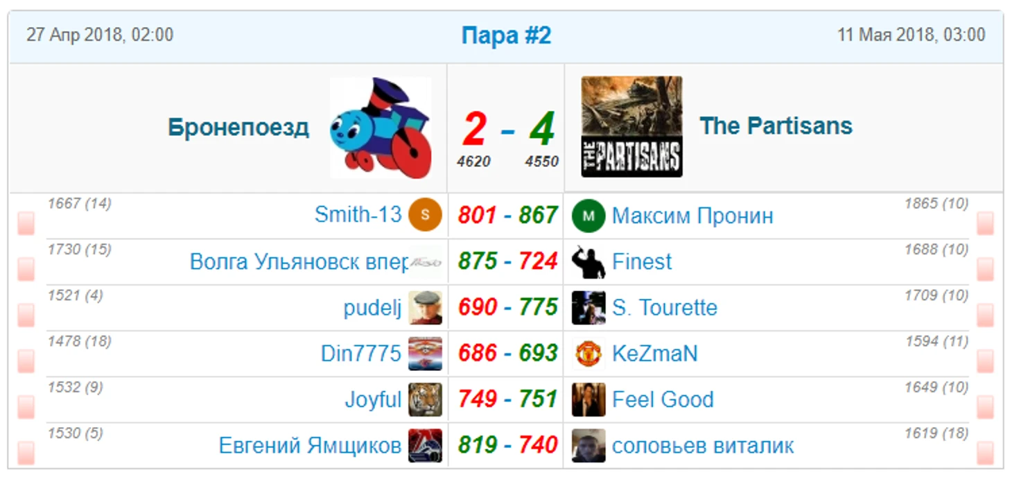 The Partisans(9) одолели Бронепоезд(6), хотя и проиграли сопернику по ФО. победа оказалась возможна благодаря мизерному двухочковому (!) преимуществу Feel Good над Joyful и 7ми очковому преимуществу KeZmaN над Din7775. Причем обе победы были добыты в последний игровой день(!) благодаря более удачно взятыми игрокам Виннипега. Вот это триллер! Жесть!